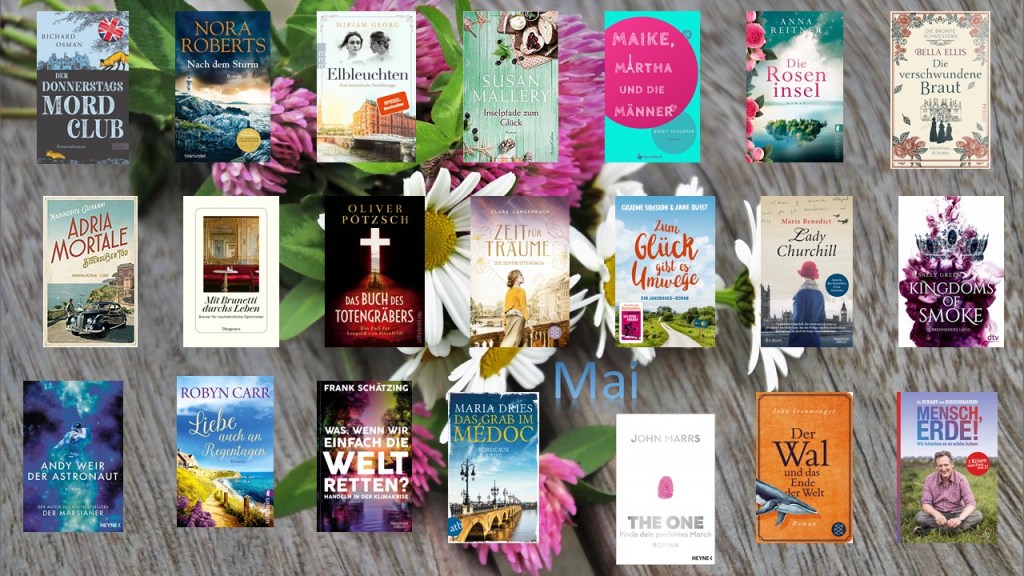 Hm, auch der Mai war wieder ein SuB Aufbau Monat 🙂 Ich habe zwar viel gelesen, aber auch viel angeschafft. Ganz die Waage hält es sich nicht, aber ich bemühe mich. Allerdings hat der Platz auf dem Bild wieder mal nur knapp gereicht 😂