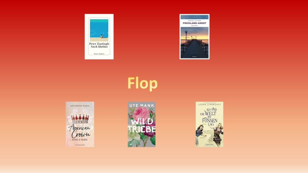 Richtige Flops hatte ich dieses Jahr eigentlich nicht, nur ein paar wenige Bücher mit 4 bzw. 6 Punkten, die mich nicht ganz so überzeugen konnten. Richtig abgebrochen habe ich kein Buch. Hier nochmal die Lowlights als Coverschau: