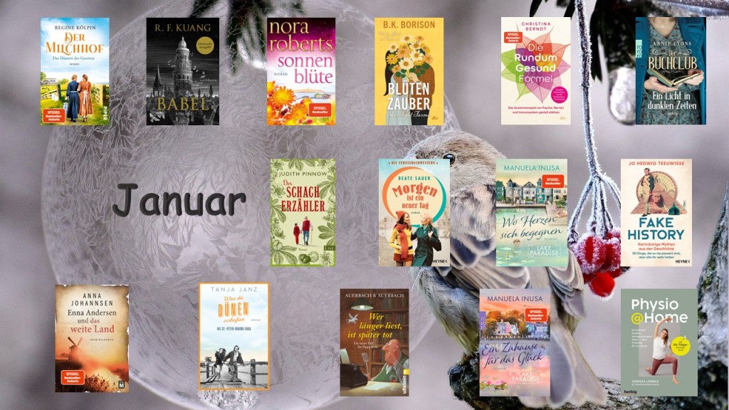 Der Januar war ein guter Lesemonat. Was die Anschaffungen betrifft war ich nicht ganz so zurückhaltend, aber ich habe auch einiges schon gelesen. Im Februar sollte es etwas weniger werden, dann beginnt ja auch die Fastenzeit. Da will ich eigentlich keine neuen Bücher bei netGalley anfordern, außer ich will sie wirklich lesen und sie werden vor dem Ende der Fastenzeit archiviert. Alles andere setze ich dann auch erstmal aus, ich habe genug zu lesen hier liegen.